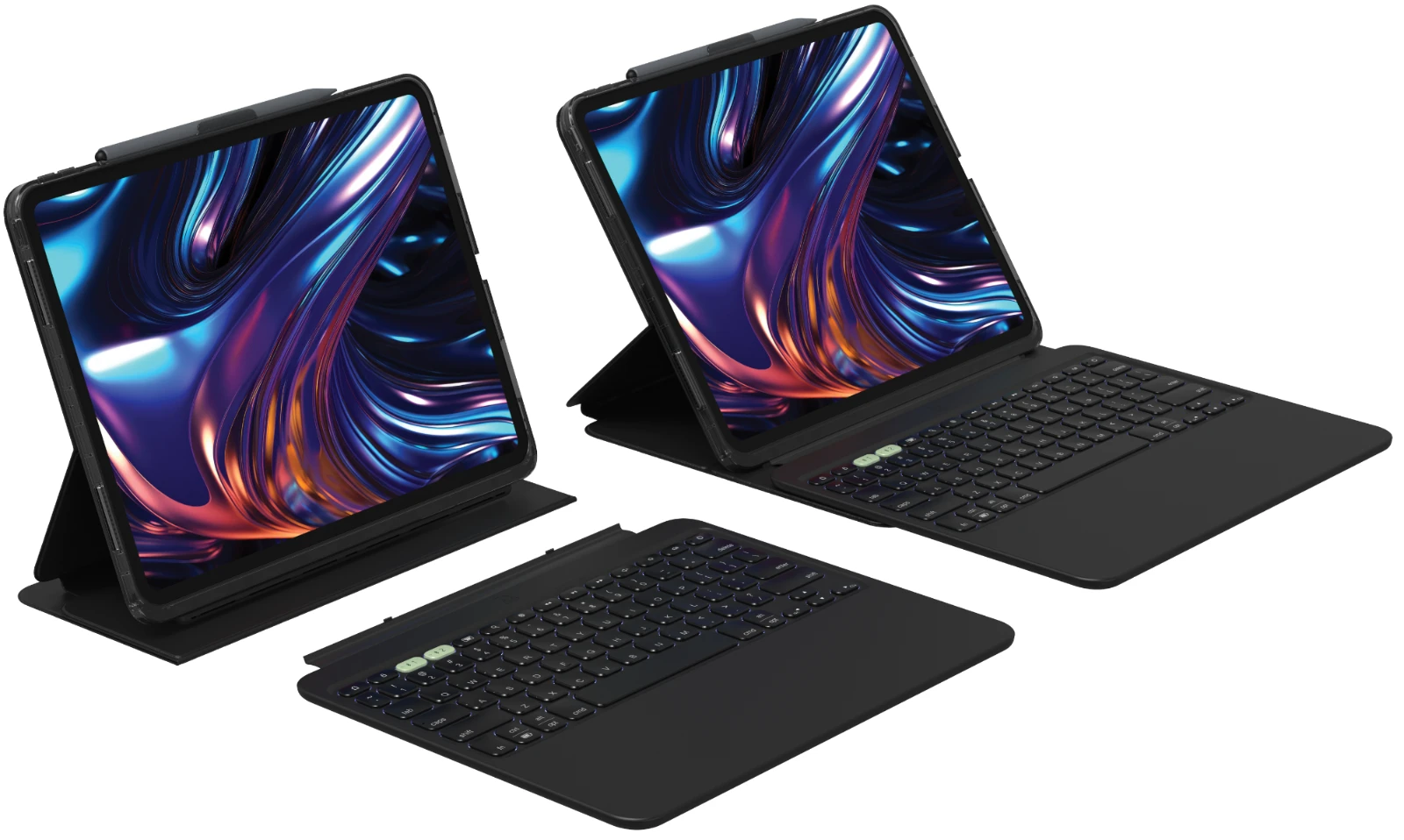 Pro Keys 2 – Die ultimative mobile Workstation für Ihr Tablet. Die Pro Keys 2 Tastatur und das Gehäuse verwandeln Ihr Tablet in eine vielseitige, mobile Workstation. Mit ihrem robusten, leichten Design, das einen Fallschutz von 6,6 Fuß bietet, ist sie für jede Umgebung geeignet. Erleben Sie flüssiges, präzises Tippen mit hintergrundbeleuchteten Tasten im Laptop-Stil, plus eine abnehmbare Tastatur und einen verstellbaren Ständer für flexible Nutzung. Eine magnetische Klappe sichert Ihren Stylus und hält das Gehäuse geschlossen. Mit bis zu einem Jahr Lebensdauer der Batterie und automatischer Sleep/Wake-Funktion, um Energie zu sparen, ist Pro Keys 2 für die Produktivität unterwegs konzipiert.